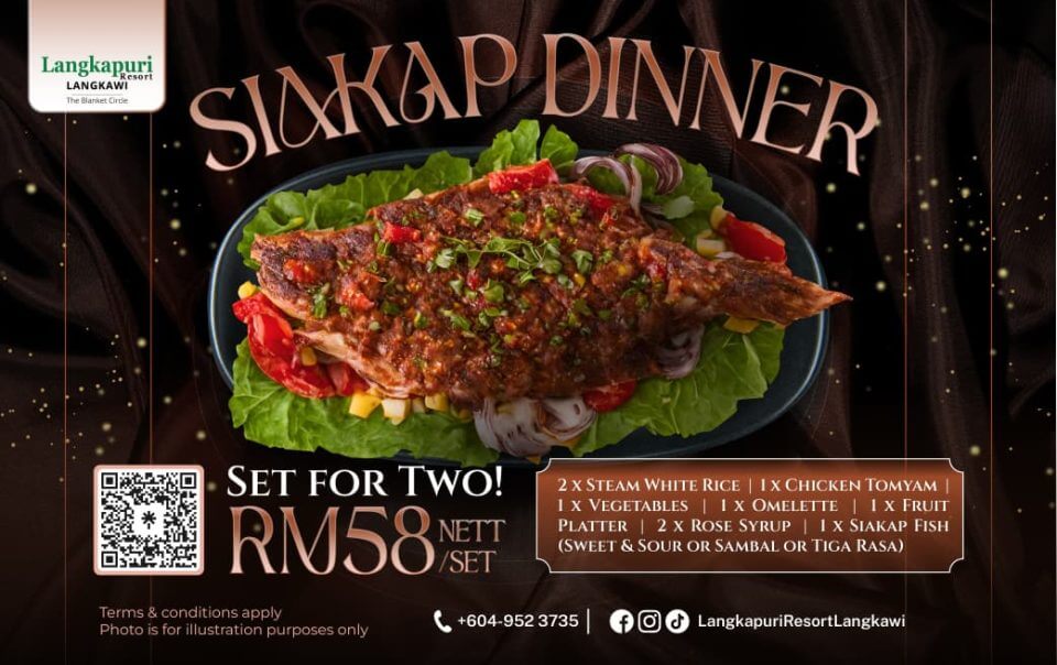 Treat your evening to something special —Siakap Dinner Set for 2, only RM58, served with...
